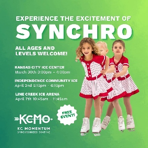 Interested in synchronized skating? Come try it for FREE! Join KC Momentum at any Kansas City rink. No experience required - open to all ages and levels, including adults! Register here We hope to see you there!